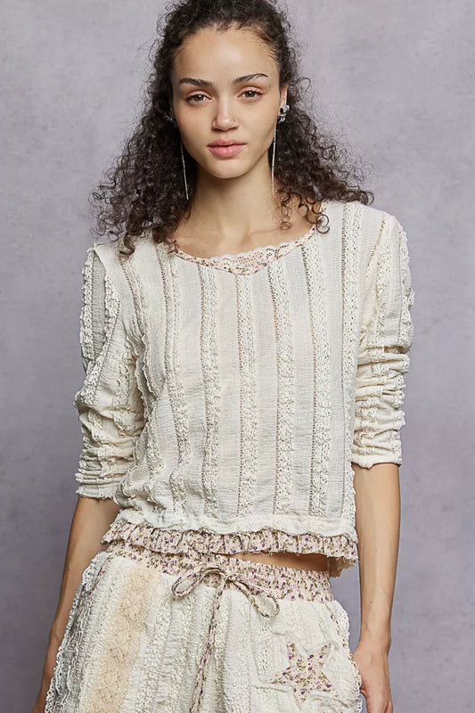 POL Texture Long Sleeve Blouse with Floral Ruffled
