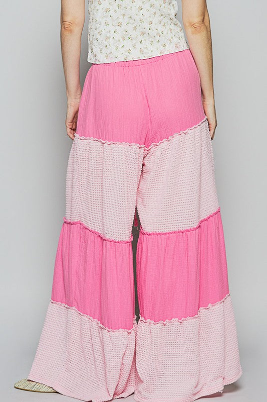 POL Lace Trim Drawstring Checkered Wide Leg Pants